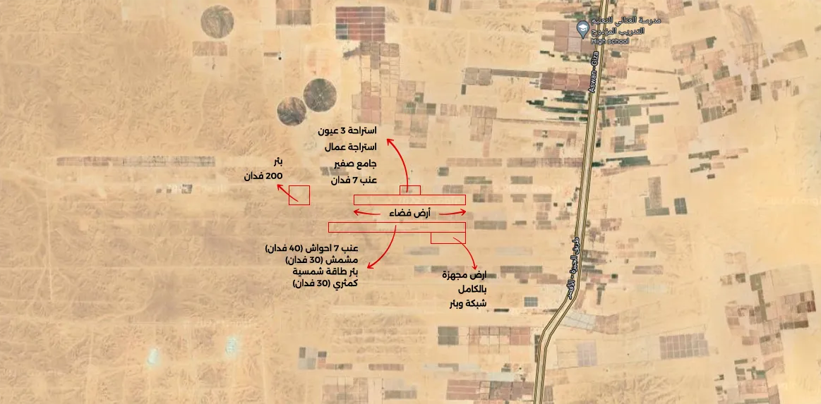 باقى المساحه ارض مستويه تماما جاهزه للزراعه .